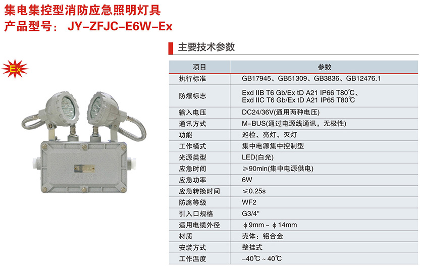JY-ZFJC-E6W-Ex系列集电集控型消防应急照明灯具