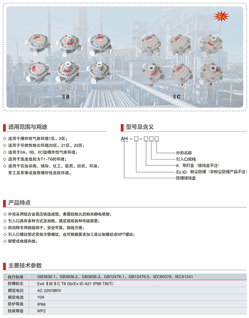 AH系列防爆接线盒(IIB、IIC、Ex tD)